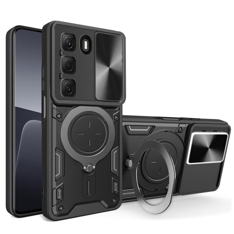Funda para Teléfono Infinix Hot 50 4G con Soporte Magnético Deslizante y Textura de Cd (Negro)