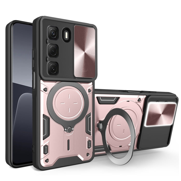 Funda para Teléfono Infinix Hot 50 4G con Soporte Magnético Deslizante y Textura de Cd (Rosa)