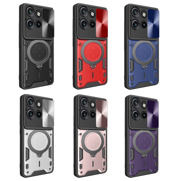 Funda para Teléfono Motorola Edge 50 Neo con Soporte Magnético Deslizante y Textura de Cd (Azul)