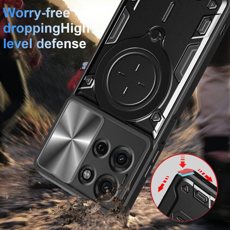 Funda para Teléfono Motorola Moto G75 5G con Soporte Magnético Deslizante y Textura de Cd (Plateada)