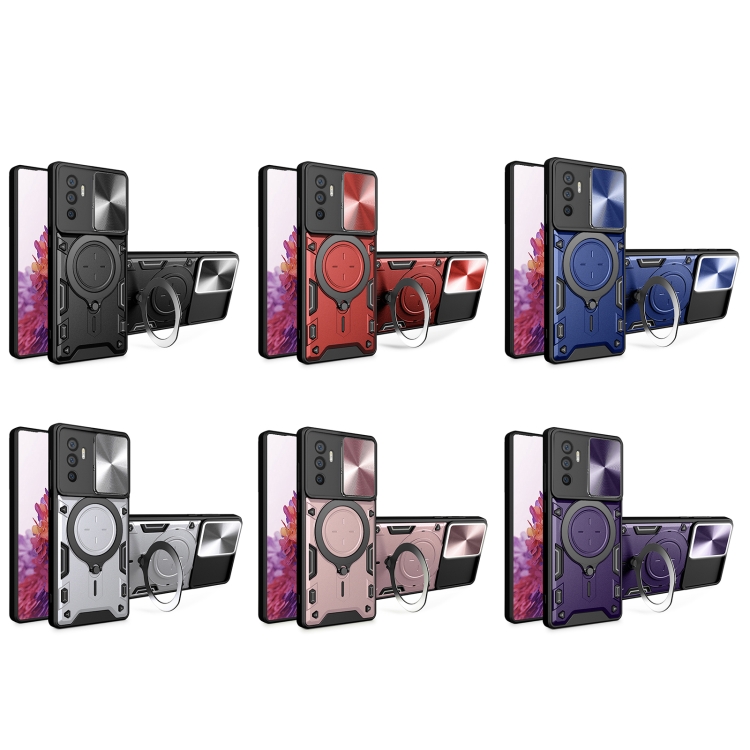 Funda para Teléfono con Soporte Magnético Deslizante con Textura de Cd para Vivo V23E 4G/5G Global (Morado)