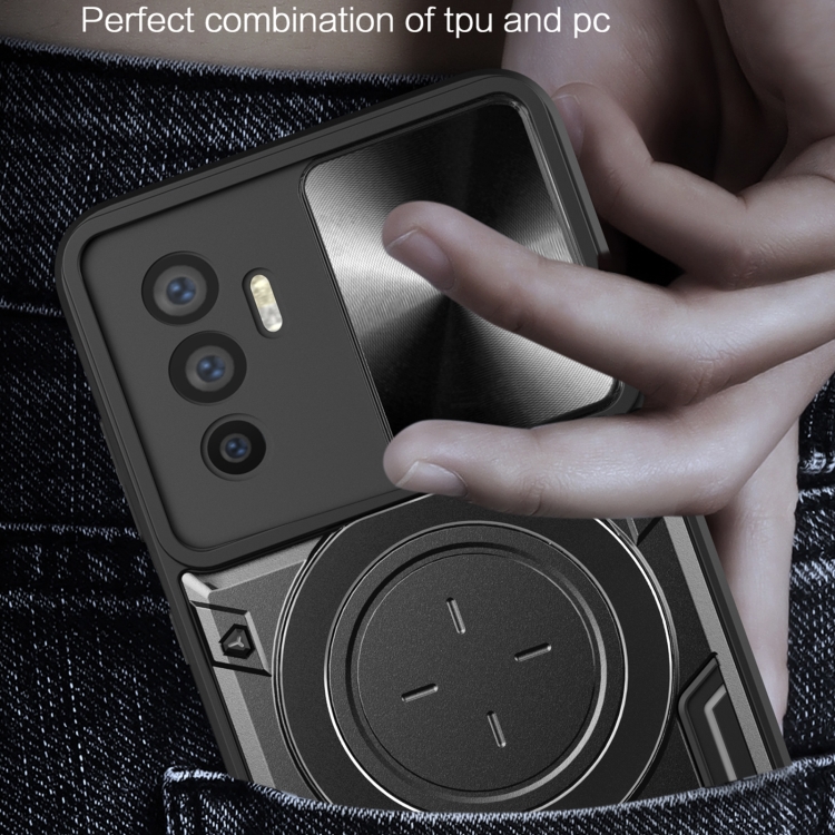 Funda para Teléfono con Soporte Magnético Deslizante con Textura de Cd para Vivo V23E 4G/5G Global (Rojo)