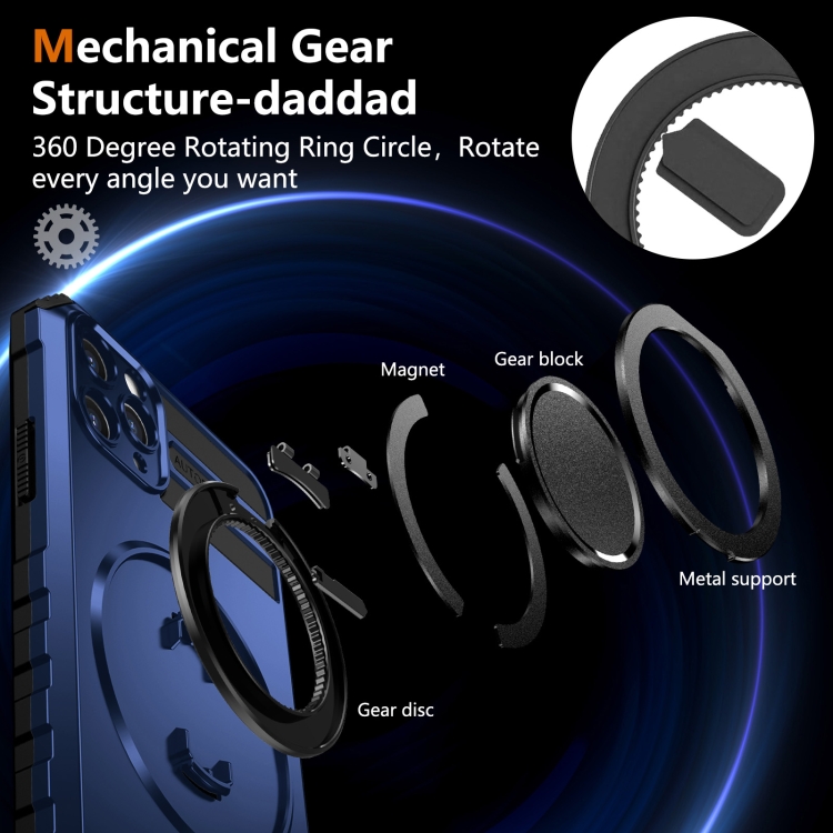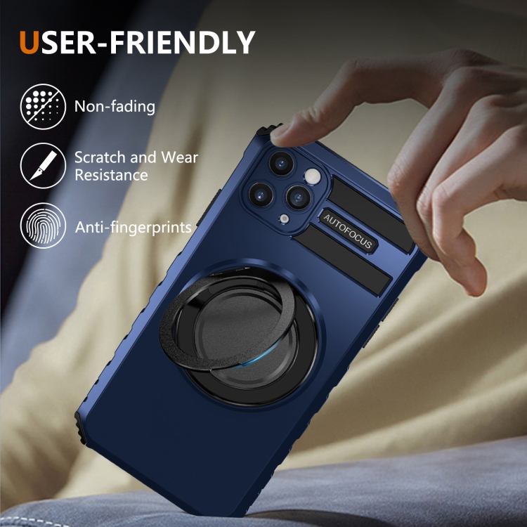 Funda para Teléfono con Soporte Magnético Giratorio iPhone 11 Pro Max (Azul Real)