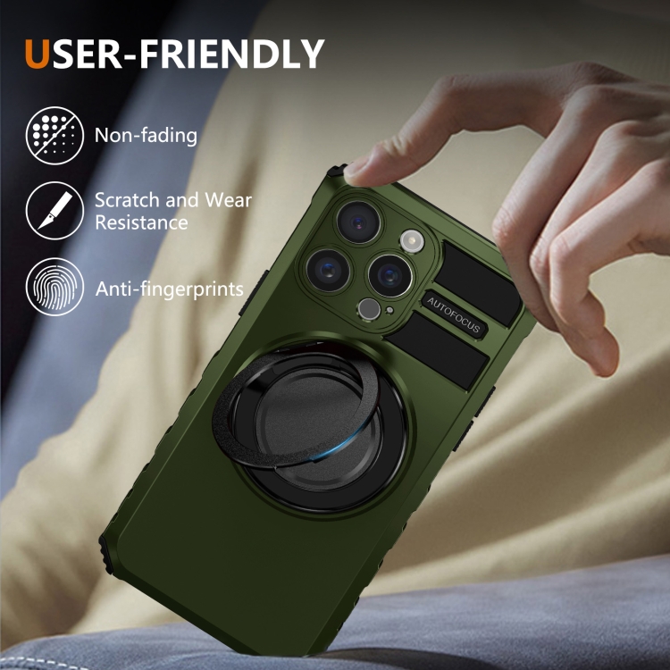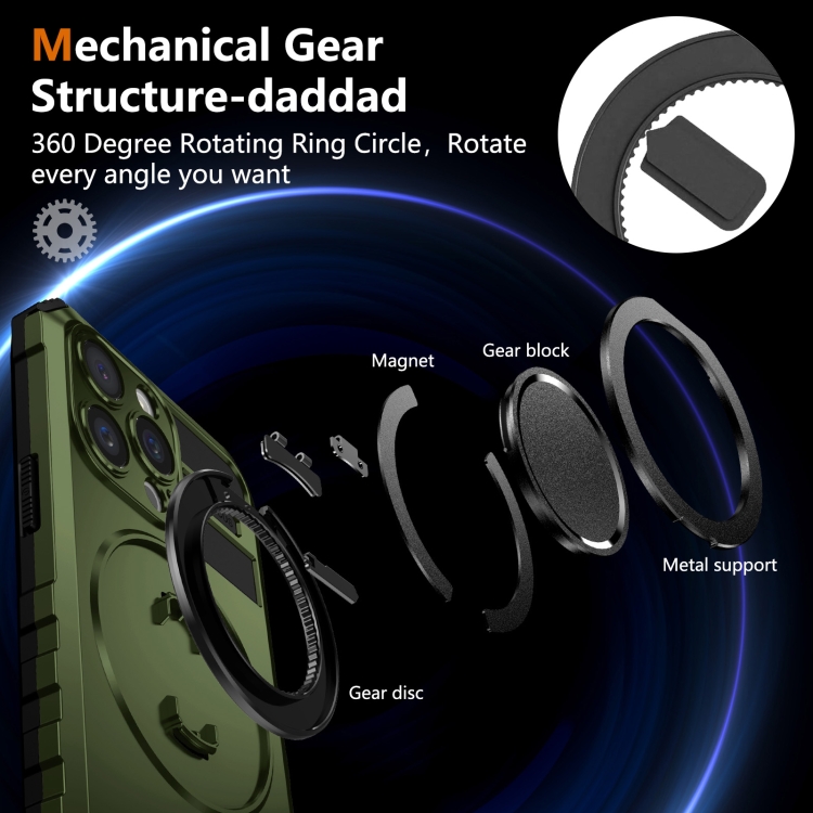 Funda para Teléfono iPhone 14 Pro Max Soporte Magnético Giratorio (Verde Oscuro)