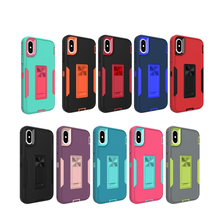Funda para Teléfono iPhone X / Xs con Soporte Magnético (Rosa Roja + Azul-Verde)