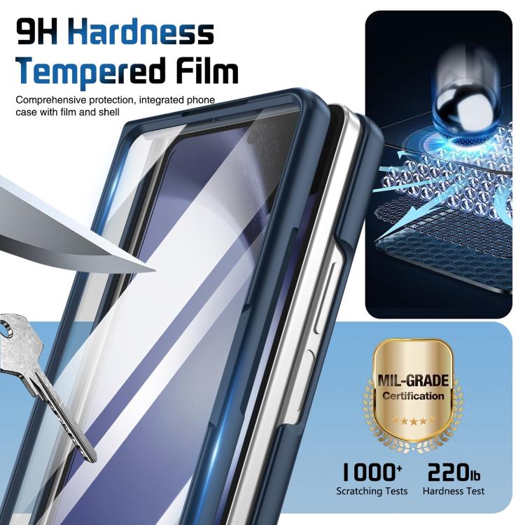 Funda para teléfono con soporte para lente integrada y correa para Samsung Galaxy Z Fold5 (azul oscuro)