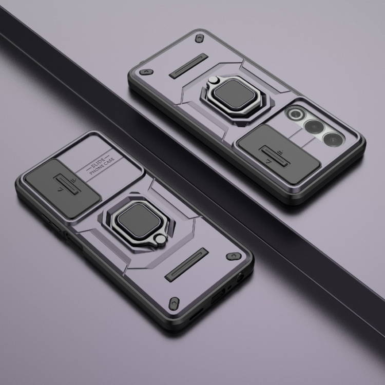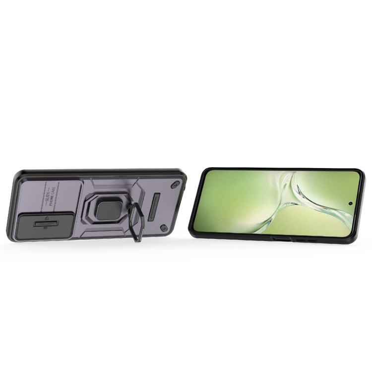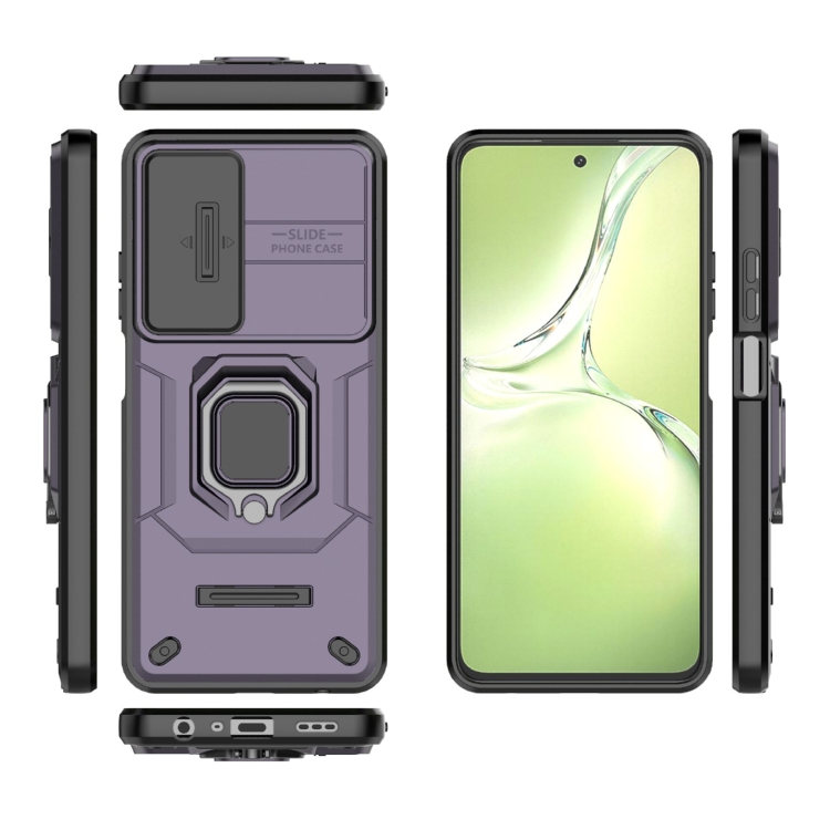 Funda para Teléfono con Soporte y Carcasa Deslizante a Prueba de Golpes de TPU + PC para Oppo K12X 5G (Morado)