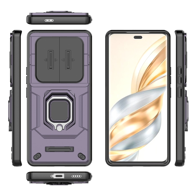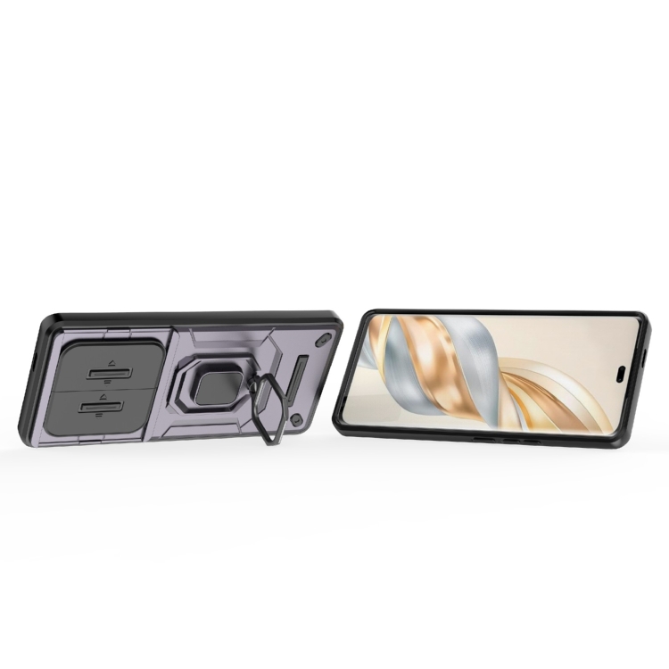 Funda para Teléfono Honor X60 Pro 5G con Soporte y Carcasa Deslizante TPU PC (Morado)