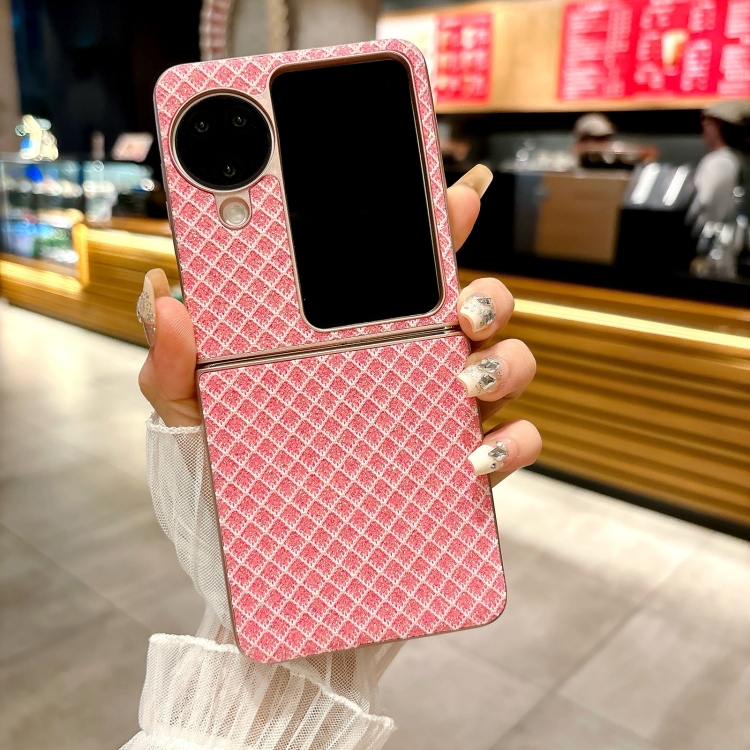 Funda para Teléfono con Tapa de PC con Rombos y Diamantes Brillantes para Oppo Find N3 (Rosa)