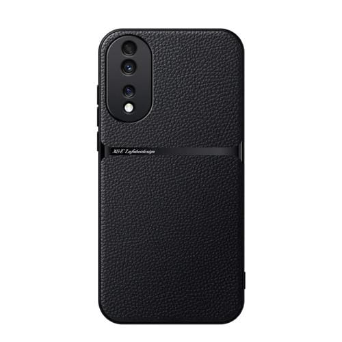 Funda para Teléfono Honor 80 con Tapa Magnética de Cuero de Lichi a Prueba de Golpes (Negro)