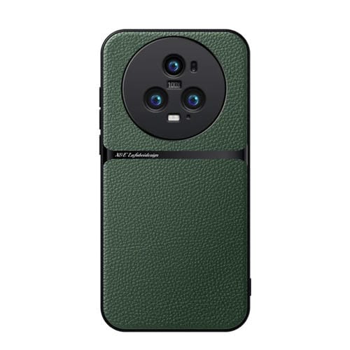 Funda para Teléfono Honor Magic5 Pro con Tapa Magnética de Cuero de Lichi a Prueba de Golpes (Verde)
