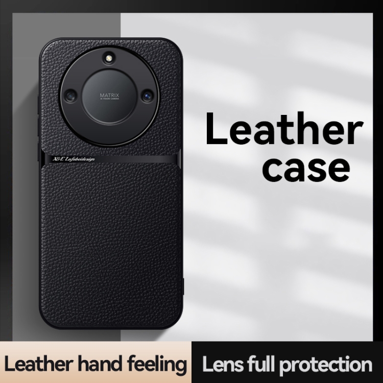 Funda para Teléfono Honor X40 con Tapa Magnética Cuero de Lichi a Prueba de Golpes (Negro)