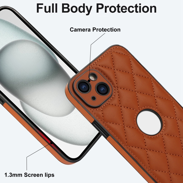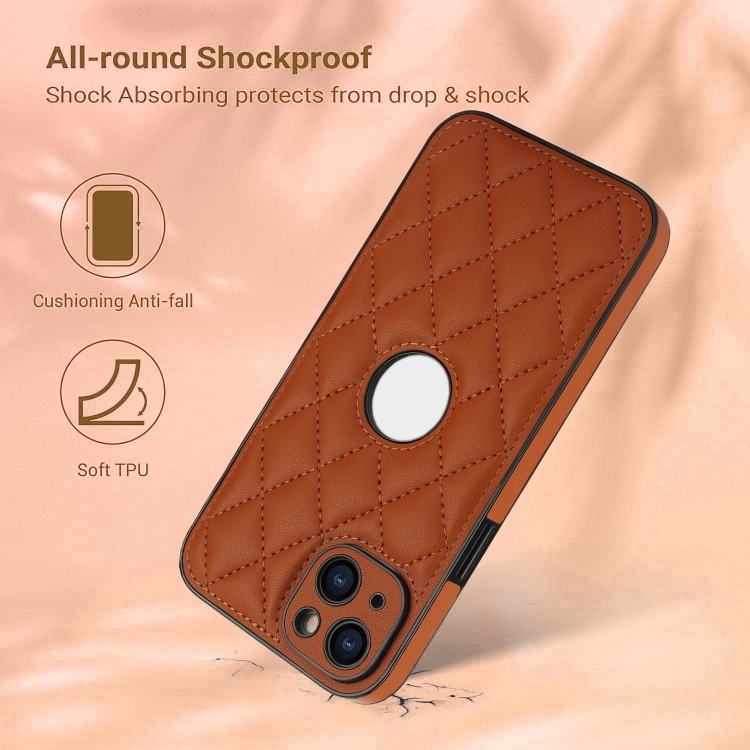 Funda para Teléfono iPhone 14 Plus Tapa Trasera Cuero Diseño Rombos (Marrón)