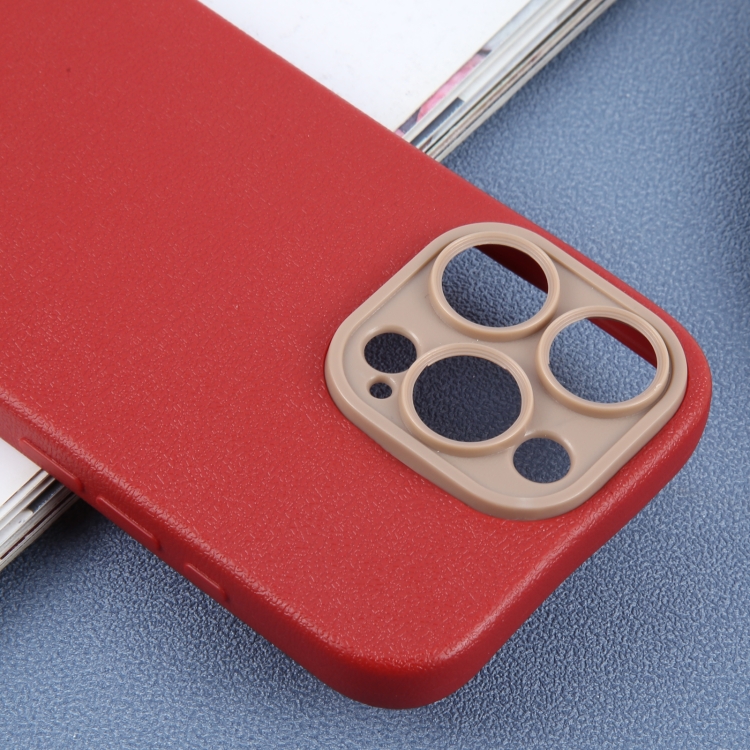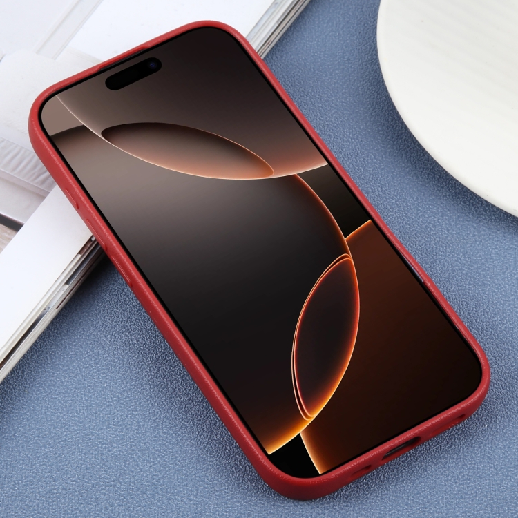 Funda para Teléfono iPhone 16 Pro Max Tapa Trasera Piel Sintética Lisa (Roja)