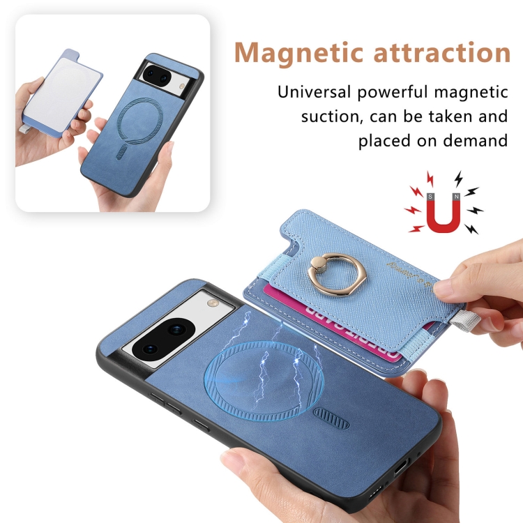 Funda para Teléfono Google Pixel 8A con Tapa Trasera Magnética de PU Magsafe (Azul)