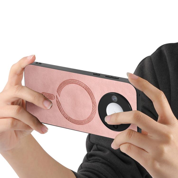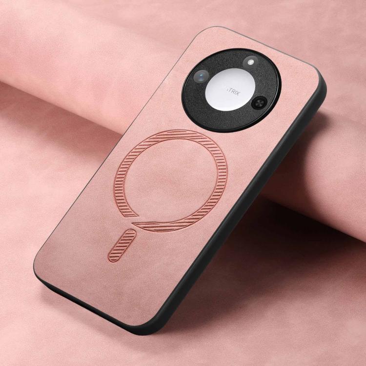 Funda Trasera Magnética de PU para Honor Magic7 Pro Retro Magsafe (Rosa)