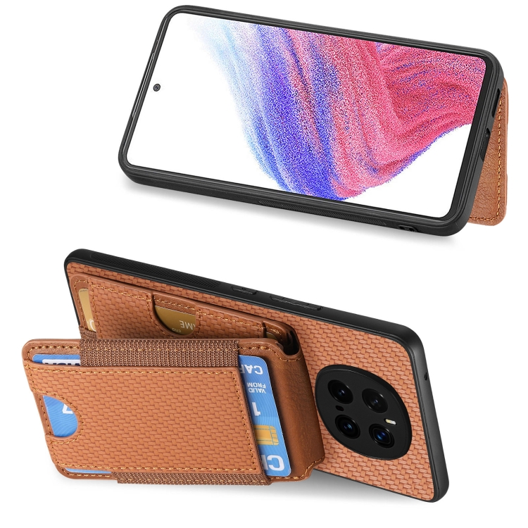 Funda para Teléfono Honor Magic7 Pro con Tapa Vertical Tipo Billetera Fibra de Carbono (Marrón)