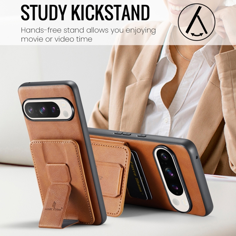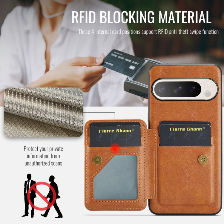 Funda para Teléfono Fierre Shann con Tarjetero Cuero de Vaca con Cera para Google Pixel 9 Pro XL (Marrón)