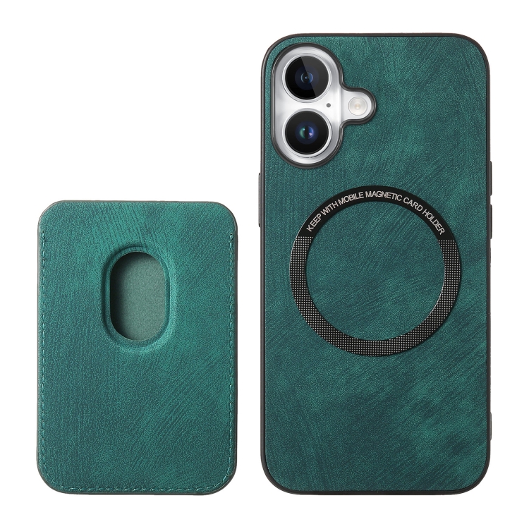 Funda para Teléfono iPhone 16 Plus Cuero Retro con Tarjetero (Verde)