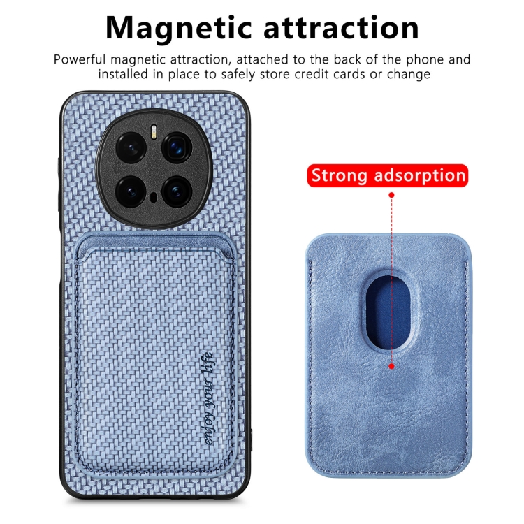 Funda para Teléfono Honor Magic 7 Pro con Tarjetero Magsafe Cuero Fibra de Carbono (Azul)