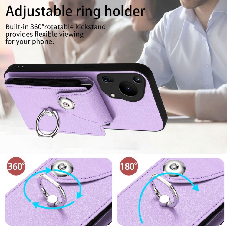 - 1x Funda para Teléfono Huawei Pura 70 Ultra con Tarjetero, Anilla y Cordón Largo (Morado)