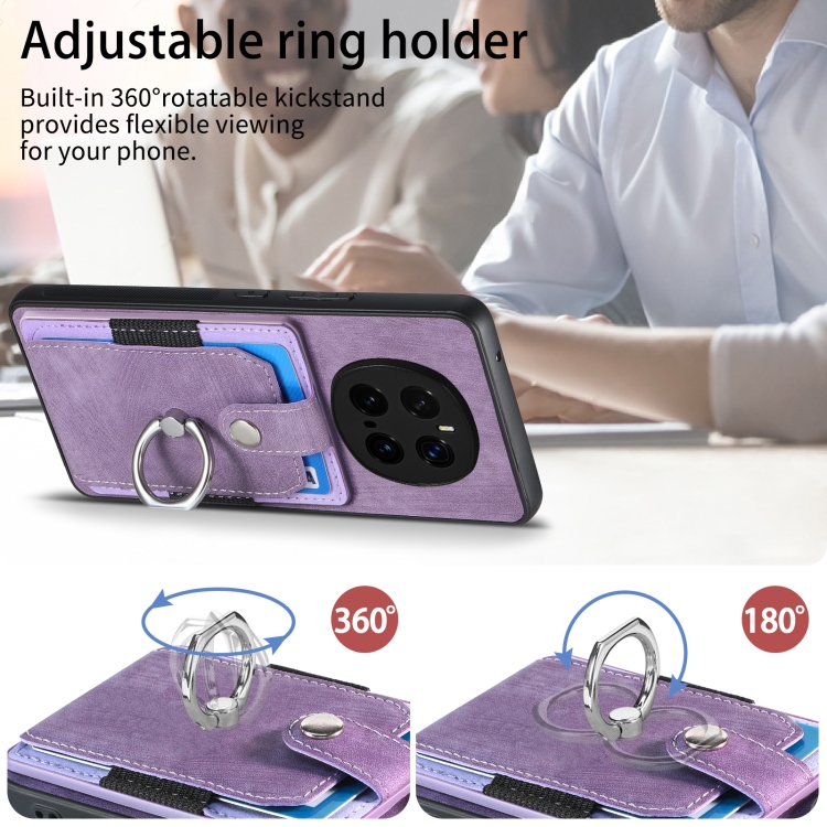 Funda para Teléfono Honor Magic 7 Pro con Tarjetero y Anillo Tacto de Piel (Morado)