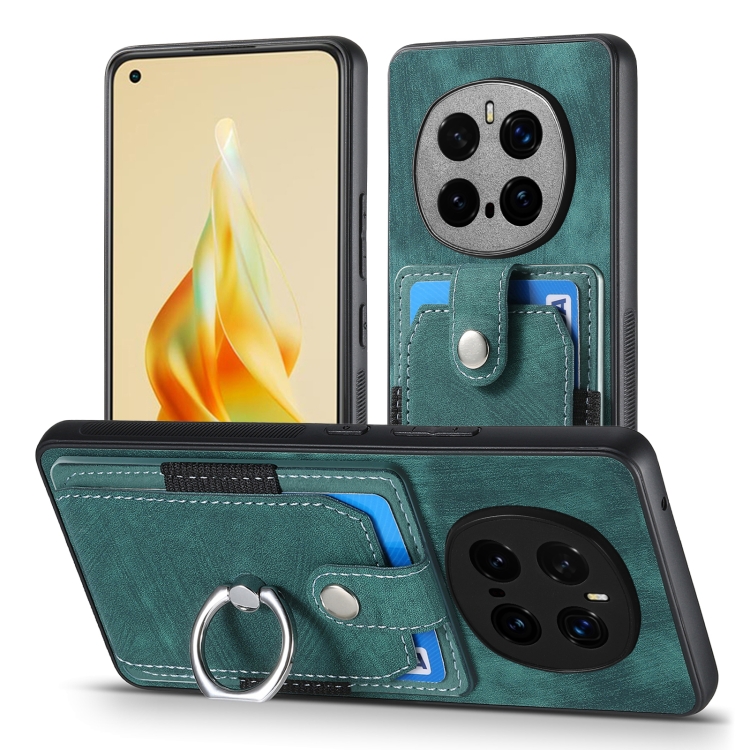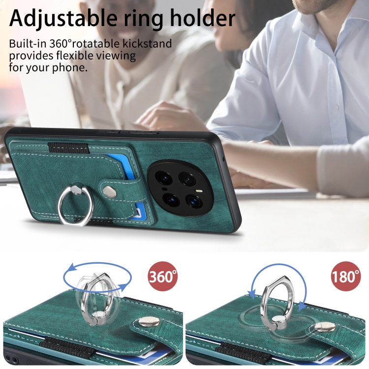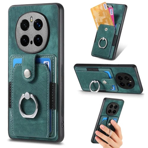 Funda para Teléfono Honor Magic7 Pro con Tarjetero y Anillo Tacto de Piel (Verde)