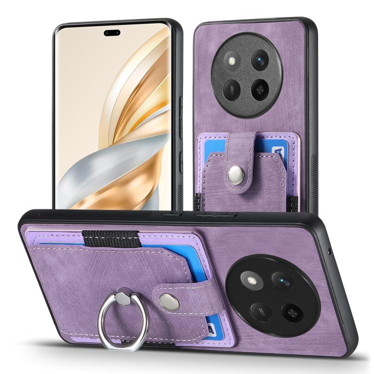 Funda para Teléfono Honor X60 Pro con Tarjetero y Anillo Tacto de Piel (Morado)