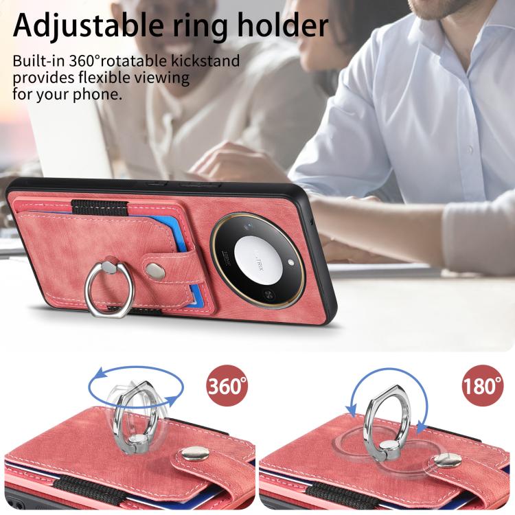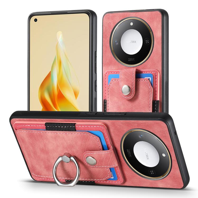 Funda para Teléfono Honor X60 con Tarjetero y Anillo Tacto de Piel (Rosa)