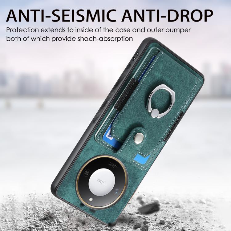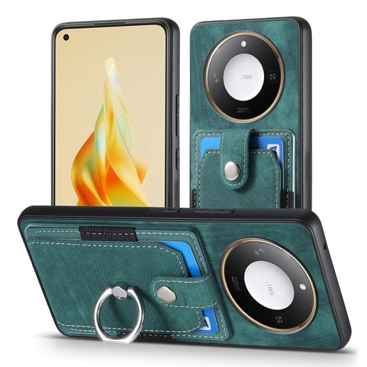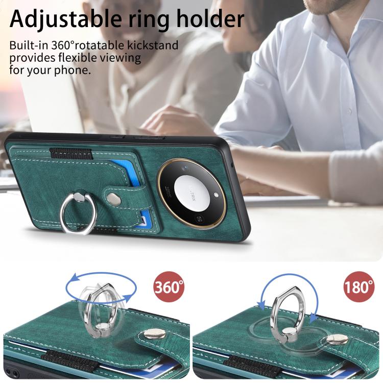 Funda para Teléfono Honor X60 con Tarjetero y Anillo Tacto de Piel (Verde)
