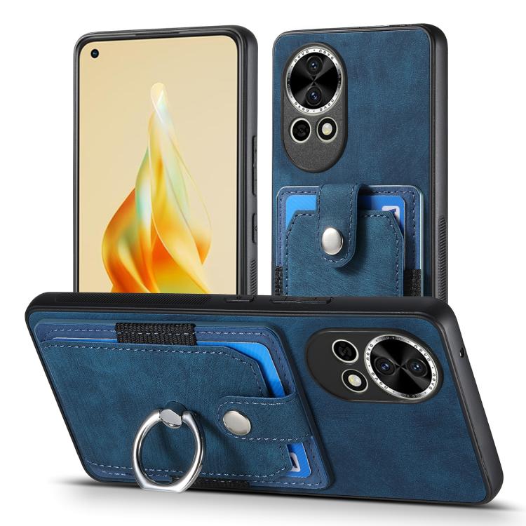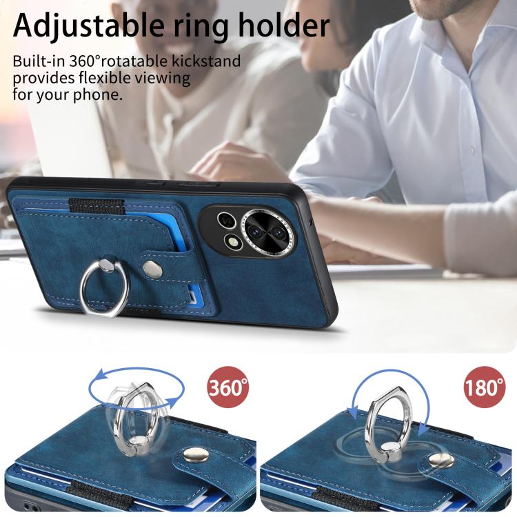 Funda para Teléfono Huawei Nova 13 Pro con Tarjetero y Anillo Tacto de Piel (Azul)