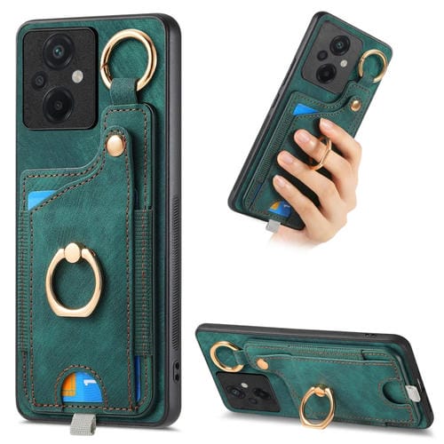Funda para Teléfono con TaRJetero y Anillo con Tacto de Piel Estilo Retro para Xiaomi Poco M5 4G con Lazo para Colgar (Verde)