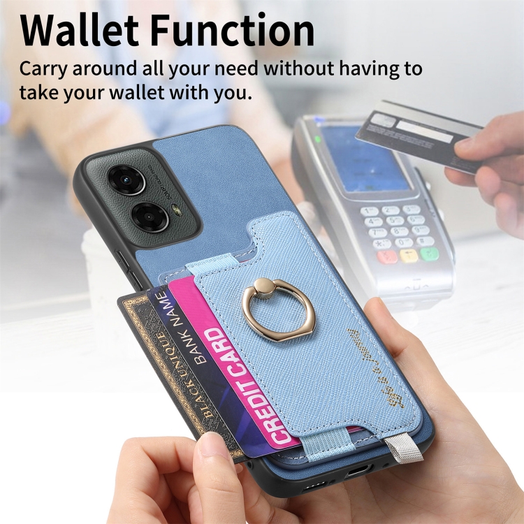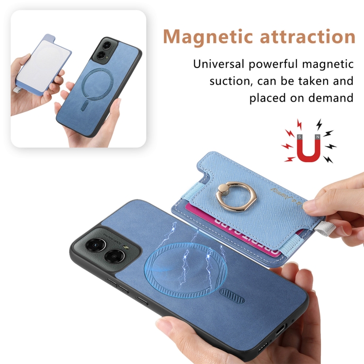 Funda para Teléfono Motorola Moto G 5G 2024 con Tarjetero y Anillo Cuero Retro Magsafe (Azul)
