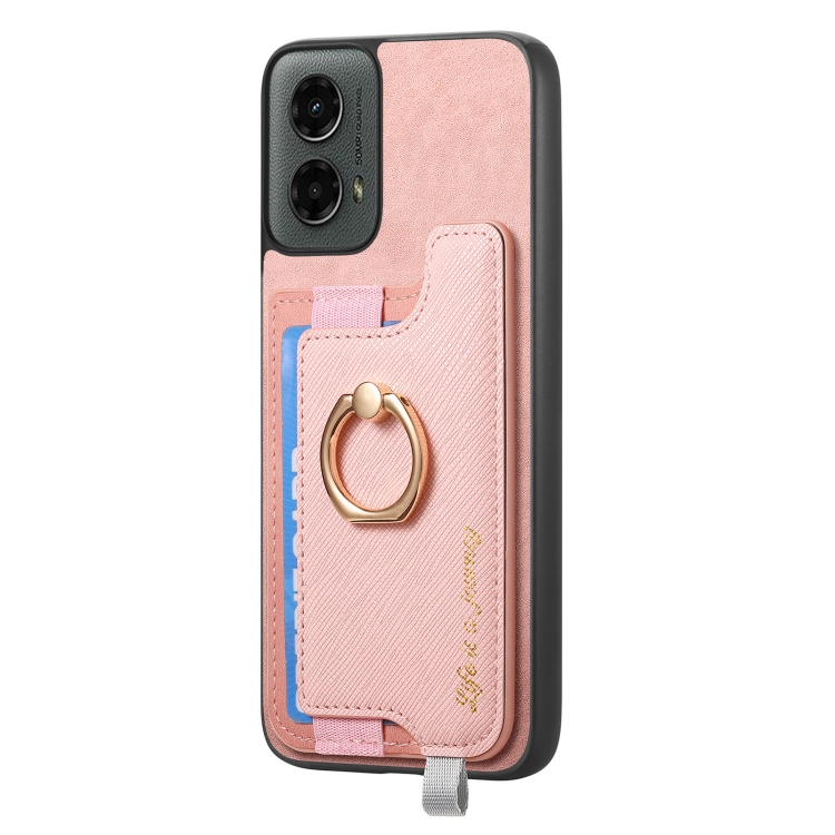 Funda para Teléfono Motorola Moto G 5G 2024 con Tarjetero y Anillo de Cuero Retro (Rosa)