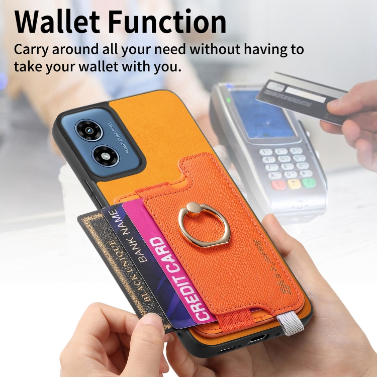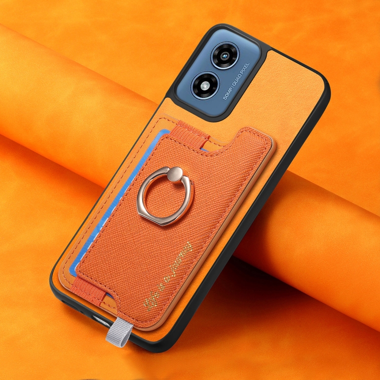 Funda para Teléfono Motorola Moto G Play 2024 4G con Tarjetero y Anillo de Cuero Retro (Amarillo)