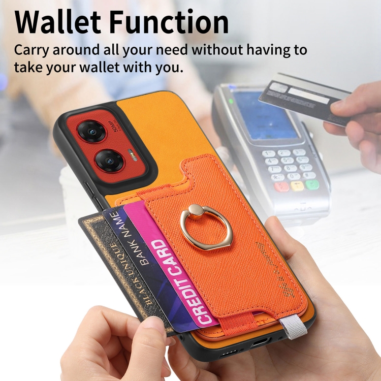 Funda para Teléfono Motorola Moto G Stylus 5G (2024) con Tarjetero y Anillo de Cuero Retro (Amarillo)