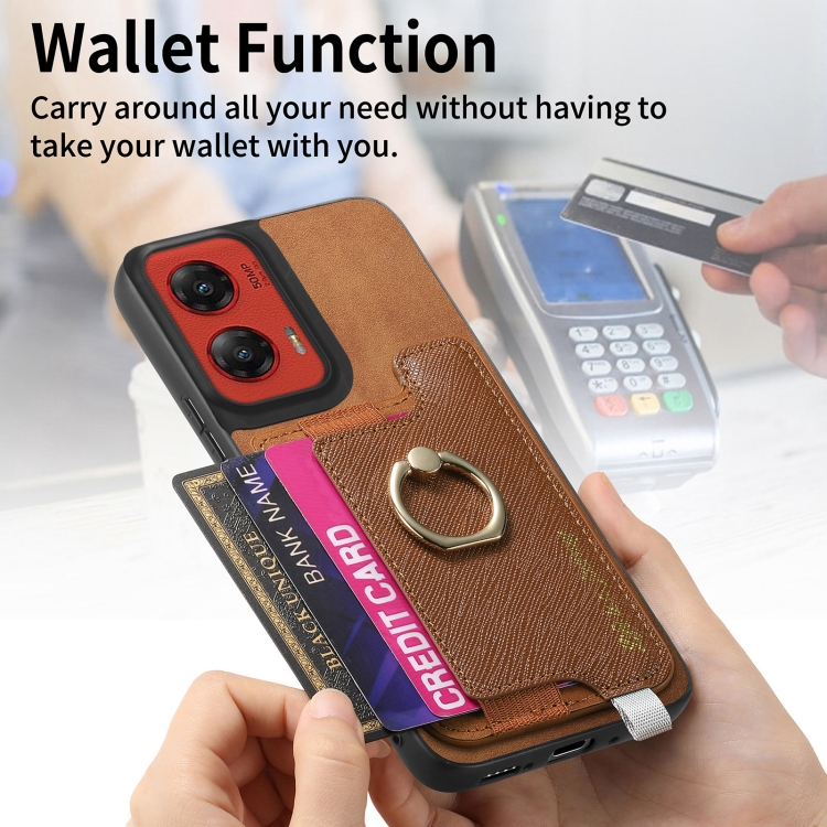 Funda para Teléfono Motorola Moto G Stylus 5G 2024 con Tarjetero y Anillo de Cuero (Marrón)