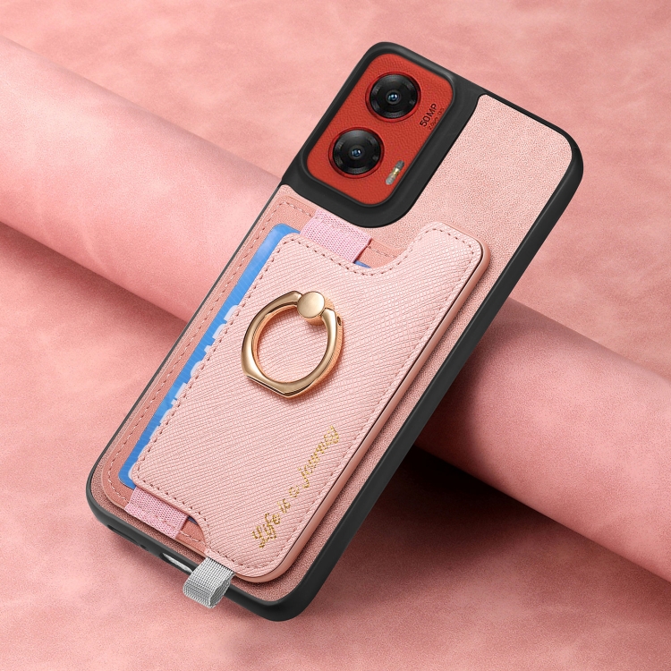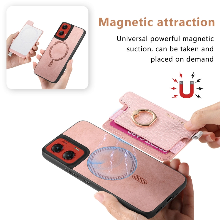 Funda para Teléfono Motorola Moto G Stylus 5G (2024) con Tarjetero, Anillo y Diseño Retro Magsafe (Rosa)