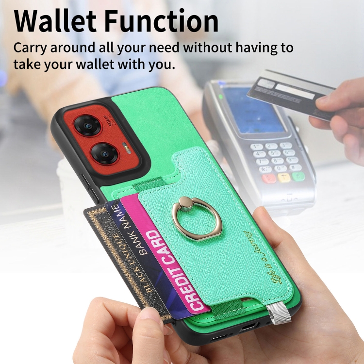 Funda para Teléfono Motorola Moto G Stylus 5G (2024) con Tarjetero, Anillo de Cuero y Diseño Retro (Verde)