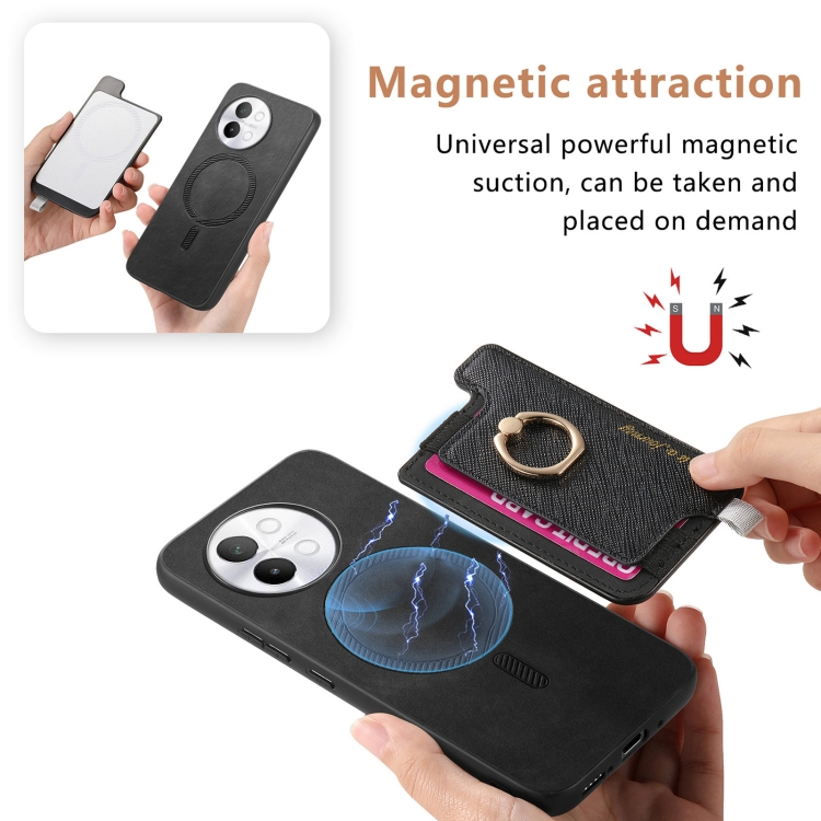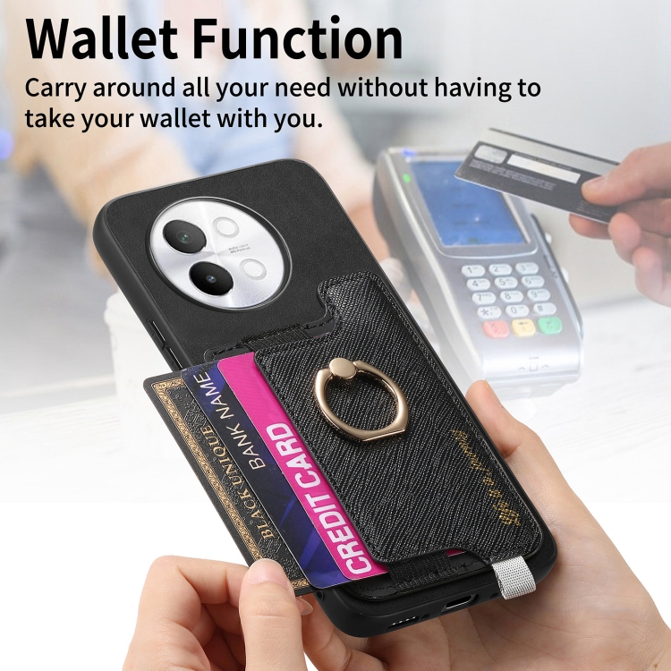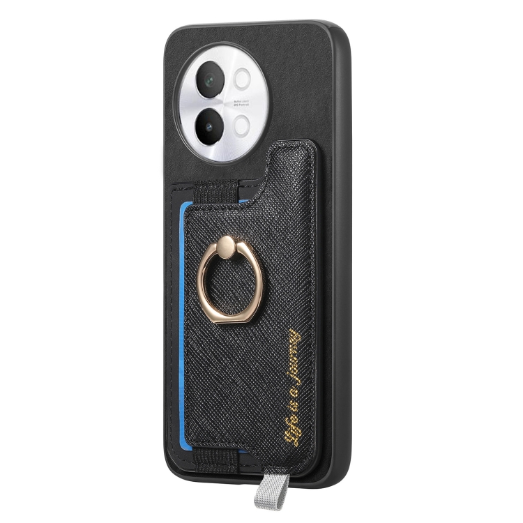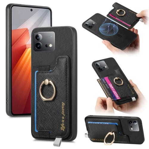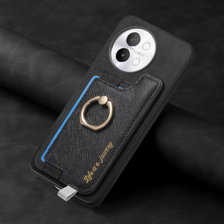Funda para Teléfono con TaRJetero y Anillo de Cuero con Diseño Retro Magsafe Cross para Vivo Iqoo Neo8/Neo8 Pro (Negro)