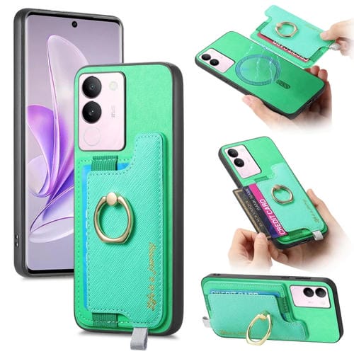 Funda para Teléfono con TaRJetero y Anillo de Cuero con Diseño Retro Magsafe Cross para Vivo S17/S17 Pro/V29 Pro 5G (Verde)