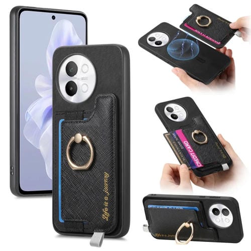 Funda para Teléfono con TaRJetero y Anillo de Cuero con Diseño Retro Magsafe Cross para Vivo S18E 5G (Negro)