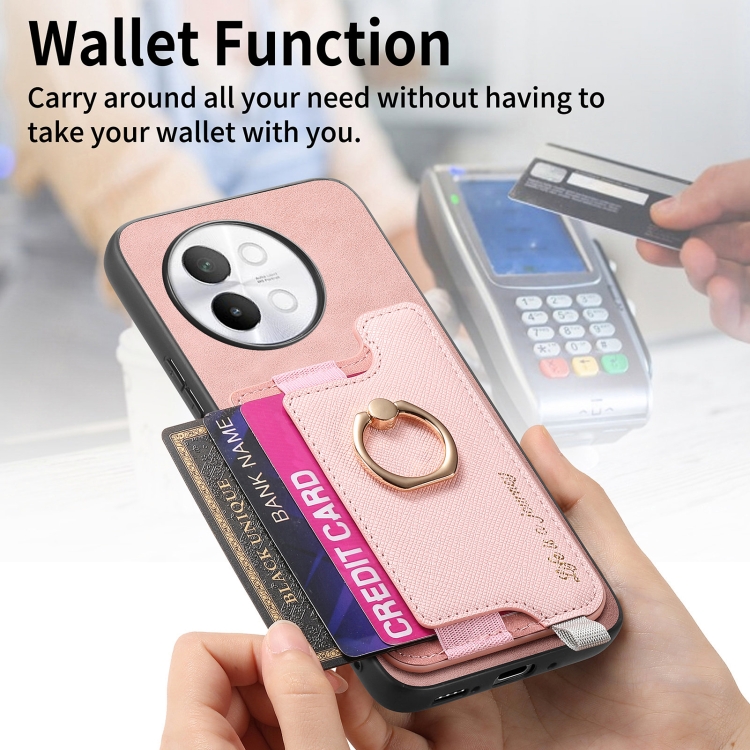 Funda para Teléfono con TaRJetero y Anillo de Cuero con Diseño Retro Magsafe Cross para Vivo S18E 5G (Rosa)