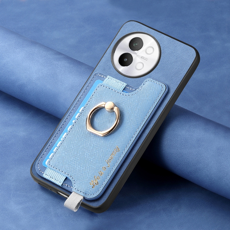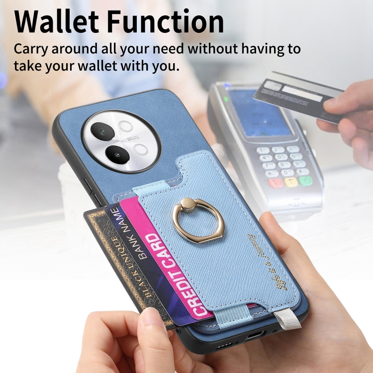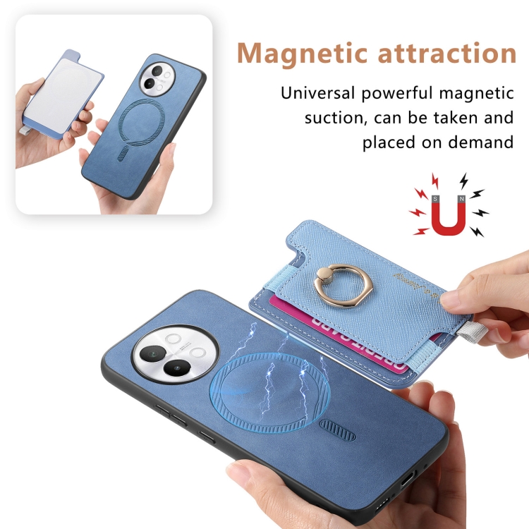 Funda para Teléfono con TaRJetero y Anillo de Cuero con Diseño Retro Magsafe Cross para Vivo Y200/V29E (Azul)