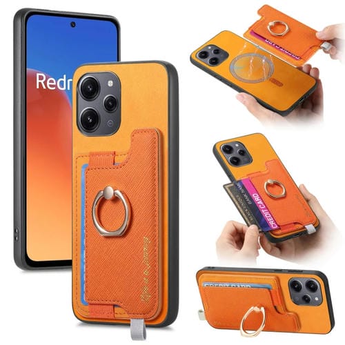 Funda para Teléfono con TaRJetero y Anillo de Cuero con Diseño Retro Magsafe para Redmi 12/Note 12R/Poco M6 Pro 5G (Amarillo)