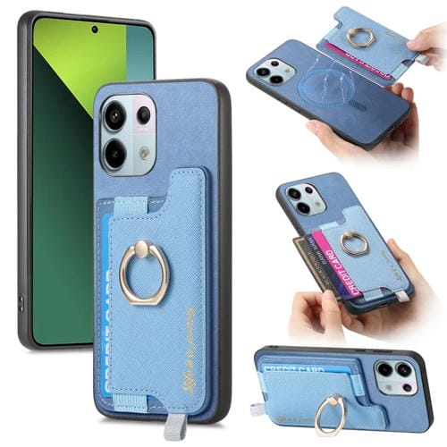 Funda para Teléfono con TaRJetero y Anillo de Cuero con Diseño Retro Magsafe para Redmi Note 13 Pro 5G/Poco X6 5G (Azul)
