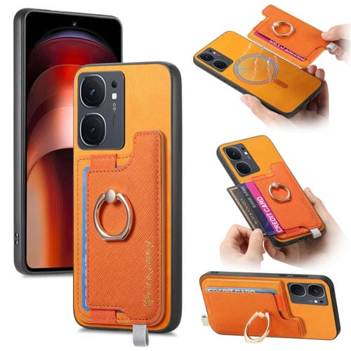 Funda para Teléfono con TaRJetero y Anillo de Cuero con Diseño Retro Magsafe para Vivo Iqoo Neo9/Neo9 Pro 5G (Amarillo)