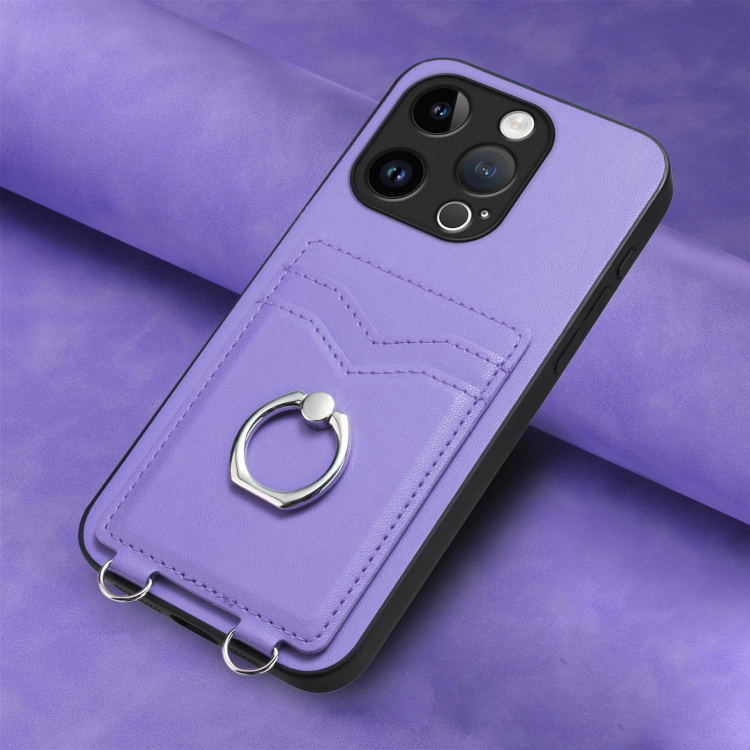 Funda para Teléfono iPhone 15 Pro R20 con Tarjetero y Anillo (Morado)