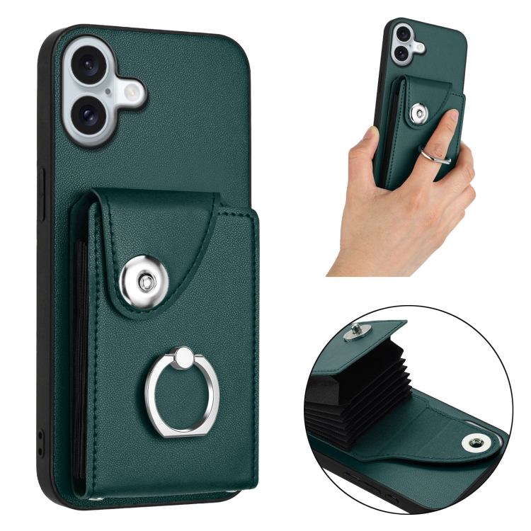 Funda para Teléfono iPhone 16 Plus con Tarjetero y Anillo (Verde)
