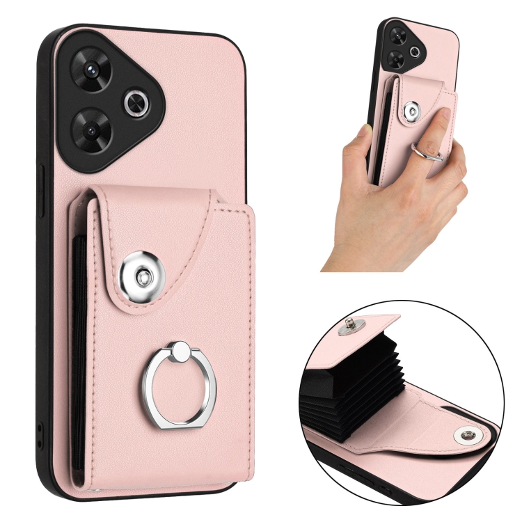 Funda para Teléfono con TaRJetero y Anillo para Redmi 13 4G/5G (Rosa)